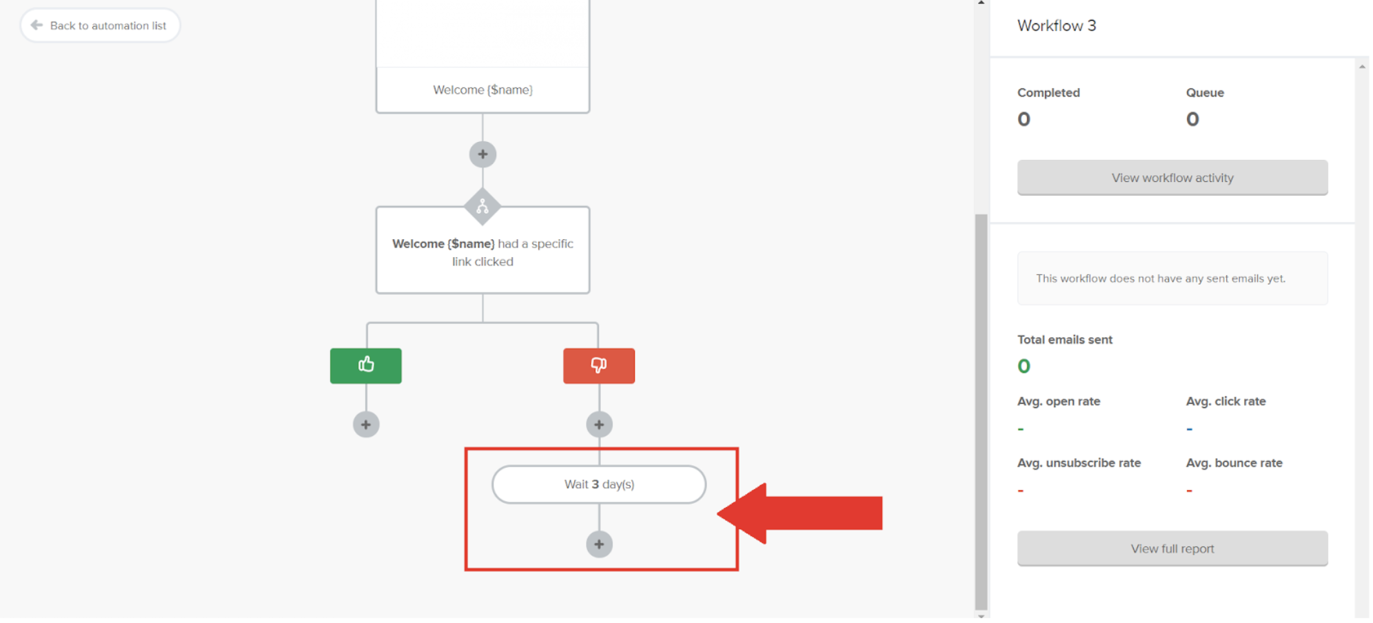 For the group that hasn’t clicked, I can send another reminder in the next 3 days. To do so, I’ll click delay and select 3 days.